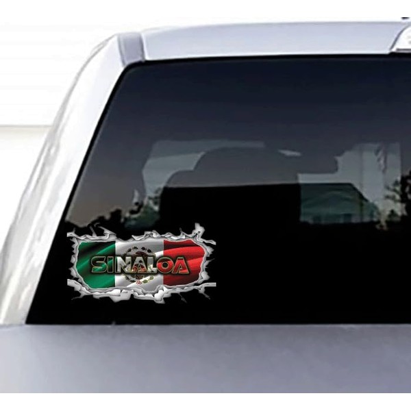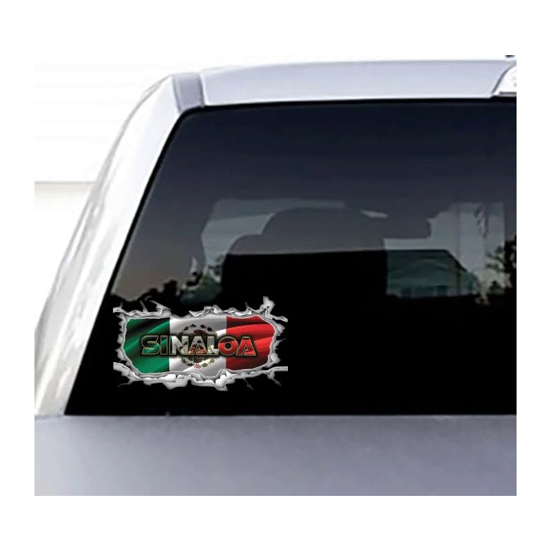 1x Sinaloa Rip Effect : Color: Mexico Flag : Size: you choose : Material and product MADE IN USA : Self adhesive backing designed to last 7 years outdoors and unlimited indoor exposure : Easy to install, just peel the backing paper and stick.