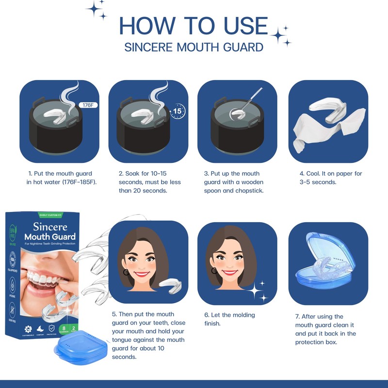- Multiple Usage : Sincere mouth guard is perfect for teeth grinding, an athletic dental guard and teeth whitening tray.
