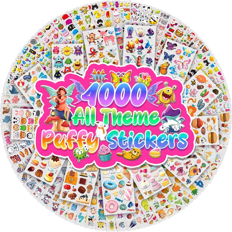 Sinceroduct Stickers for Kids 4000+, 3D Puffy Stickers for Kids Toddlers 80 Different Sheets Variety Pack for Craft Scrapbooking,Boys Girls Teachers Gifts, Reward for Students or Children