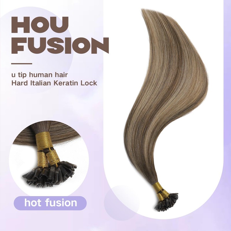 Sindra Bondings Extensions Real Hair 40 cm 40 g 50 Strands Keratin Real Hair Extensions Balayage Brown to Caramel Blonde and Brown U-Tip Extensions Real Hair U4/27/4-16 Inches