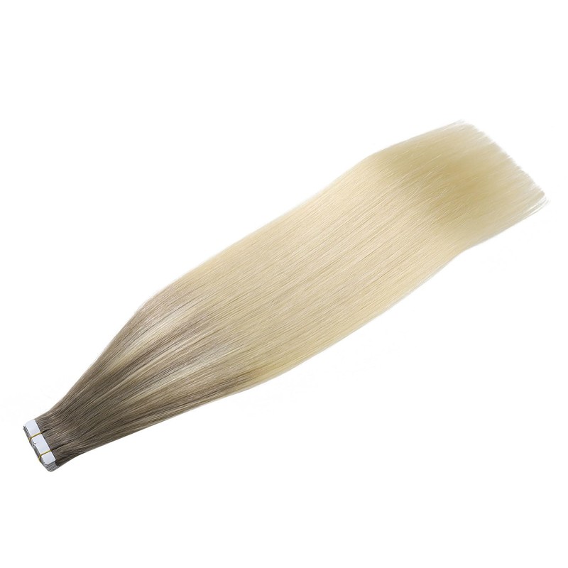Sindra Tape in Hair Extensions Ash Brown to Platinum Blonde Tape Human Hair Extensions 22 Inch Seamless Skin Weft Double Sided PU Glue in Extensions Invisible 50 Grams T#8/60 22in