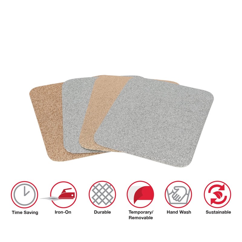 • Set of 4 sturdy poly-cotton blend patches in glittery metallic gold and silver colors