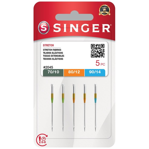 Pack of 5 Genuine SINGER Stretch Needles designed to work with spandex, lycra and suede. Compatible with all quality sewing machines, including SINGER, Brother, and Kenmore brands.