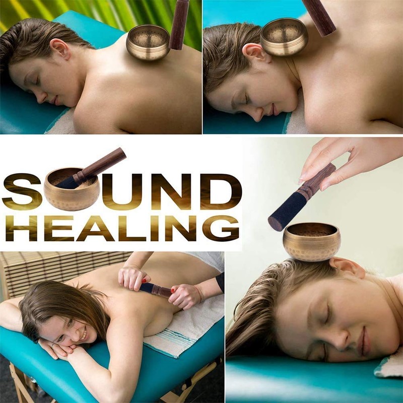 - Unique design: each craftsman has its own unique mixing formula that makes the sound frequencies and sound of each singing bowl different. The bottom of the singing bowl set is kylin grain pattern, symbol of good luck and health. The Tibetan singing instrument consists of a singing bowl, a wooden hammer, a silk cushion, a fabric bag and two copper bells. The sound of the bowl vocals has a calming effect and provides clarity and calm.