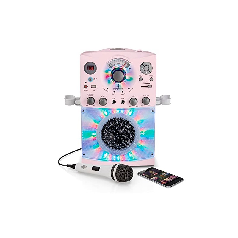 Singing Machine SML385UP Bluetooth Karaoke System with LED Disco Lights, CD+G, USB, and Microphone, Rose Gold/Frosted Pink []