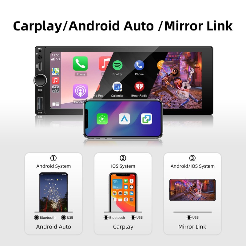 - 【6.86 Inch Touchscreen Single Din Carplay Car Stereo】Apple carplay stereo comes with a backup camera and a external microphone, support Type-C fast charging for phones,Steering Wheel Control,U flash drive / AUX / BT playback.