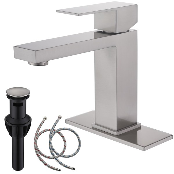 Single Hole Bathroom Faucet, AmirLans Stainless Steel Brushed Nickel Bathroom Faucet with Pop Up Stopper, Bathroom Sink Faucet AML-1141-BN