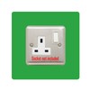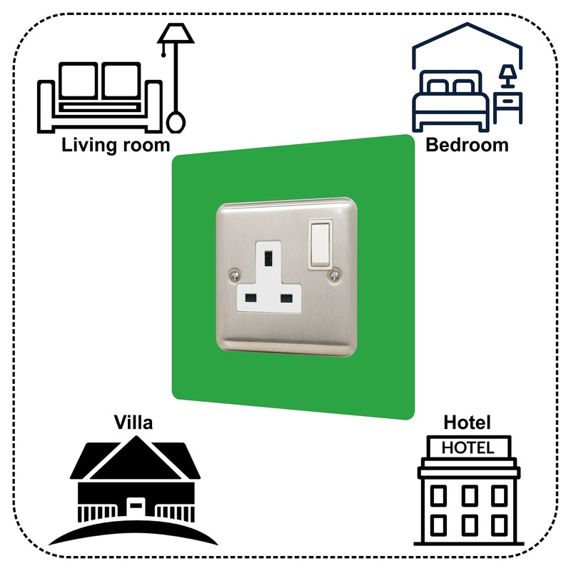 Single Socket Surround | Square | Acrylic Back Panel or Finger Plate | Light Switch Plug, Font Colour:Light Green