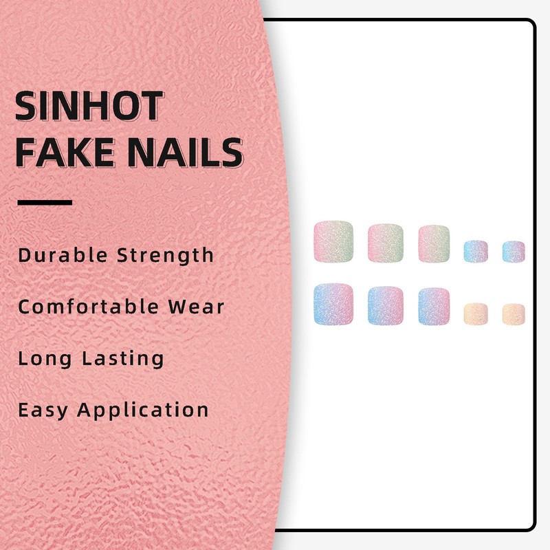 - [High Material] SINHOT press on toenails are made of high quality ABS environmental friendly acrylic material, not easy to break, durable, non-toxic and odorless, will not harm to your nails and body.