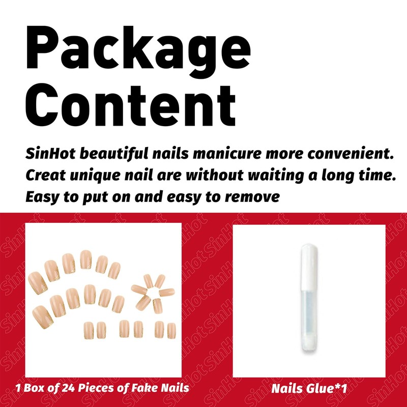 - [Medium Square Press on Nails Design] - 24pcs of medium square press on nails. Provides your nails an excellent and charming look. Excellent quality, and easy to use, considering the difference of each person's fingernails, which is individually numbered 0-9, choose 10 pieces press on nails from the 24 pieces.(with1 x glue)