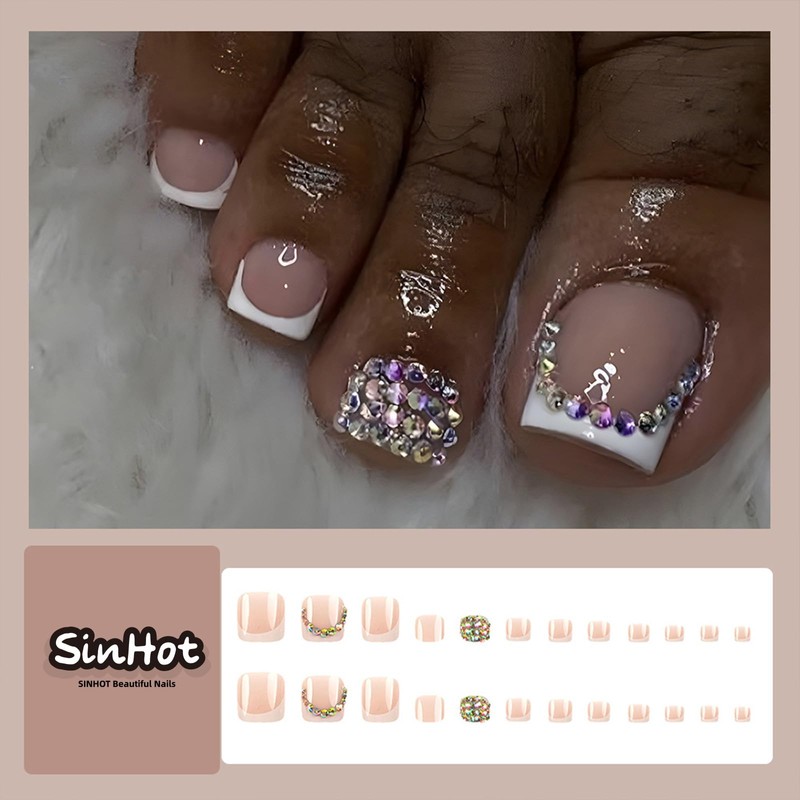 - [Unique Design] According to the most popular elements of the moment, these press on toenails are designed with bling white white french tip and 3d diamond.