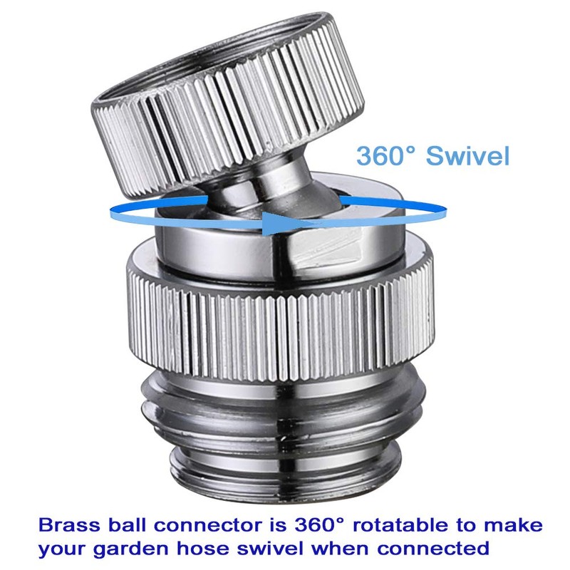 - ▶【Quality Material】:Made of solid brass material, polished chrome plated finish, wear-resist and durable to use. Brass swivel ball connector, leak-proof and rotate freely. 360° Rotatable faucet adapter makes your garden hose swivel when connected. If garden hose not in use, connect the aerator to the adapter directly, then it becomes swivel faucet aerator.