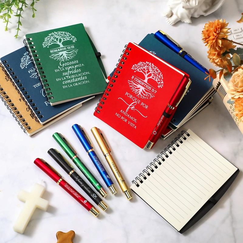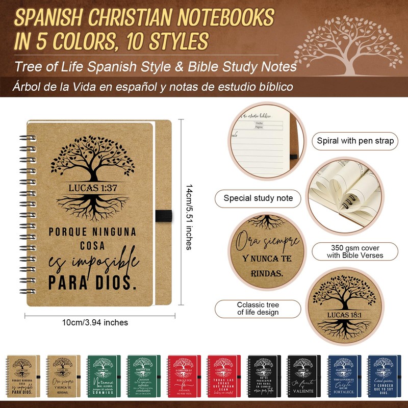 - Church Gifts Bulk: spanish christian journals bulk consists of 20 pcs and in 5 different colors, including 10 pcs bible tree of life notebooks and 10 pcs christian bible pens, each printed with inspiring bible verse; You can share them with your family, friends and colleagues