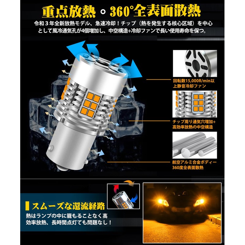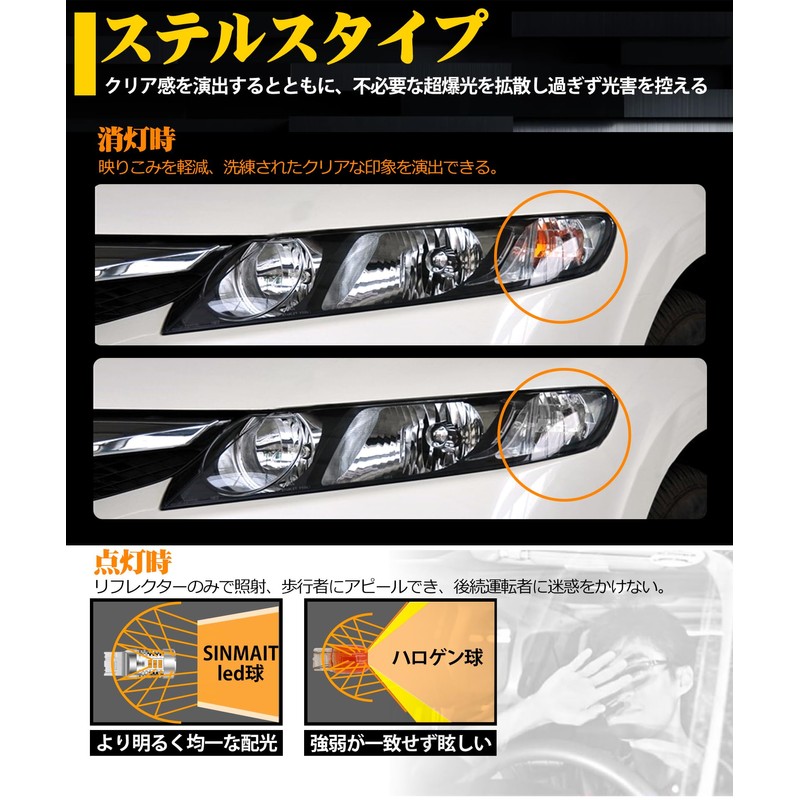 - Super Bright with Headlight Grade LED Chips: Non-polarized T20 single bulb (both with pinch parts) LED turn signal bulb. Uses an LED chip that maintains explosive light and provides 360° illumination in all directions without disturbance, and a full start of 0.1 seconds. Color: Genuine amber color not too thick or too thin. It improves visibility and illuminates with reflections alone, so it prevents light damage without being too much unnecessary super explosive light