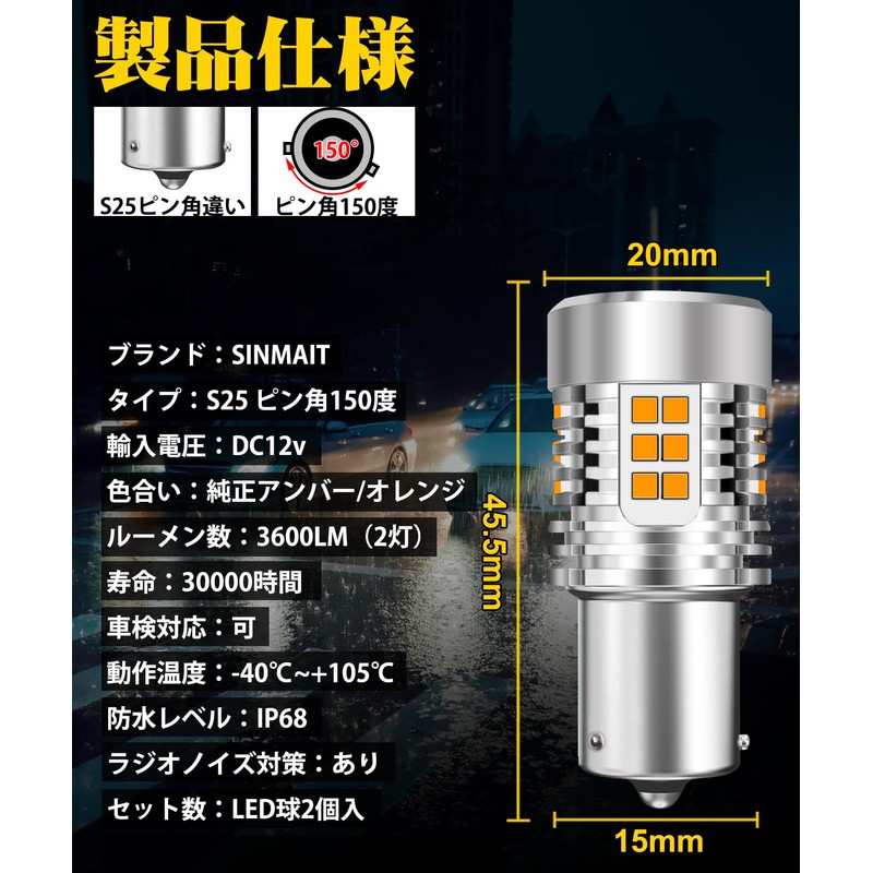 SINMAIT S25 LED Turn Signals with Different Pin Angles, High Fla Prevention, Built-in Resistor, Single 150°, For DC 12V Cars, Explosive Light, Non-Polarity, Pong Mount, Integrated Ultra Mini Size,