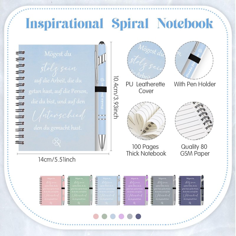 Sinmoe 6 Sets of Thank You Gifts for Colleagues, 6 Spiral Notepads, 6 Ballpoint Pens with Touchpen, Farewell Gift for Colleagues, Motivational Gift Set for Christmas (Mögest)
