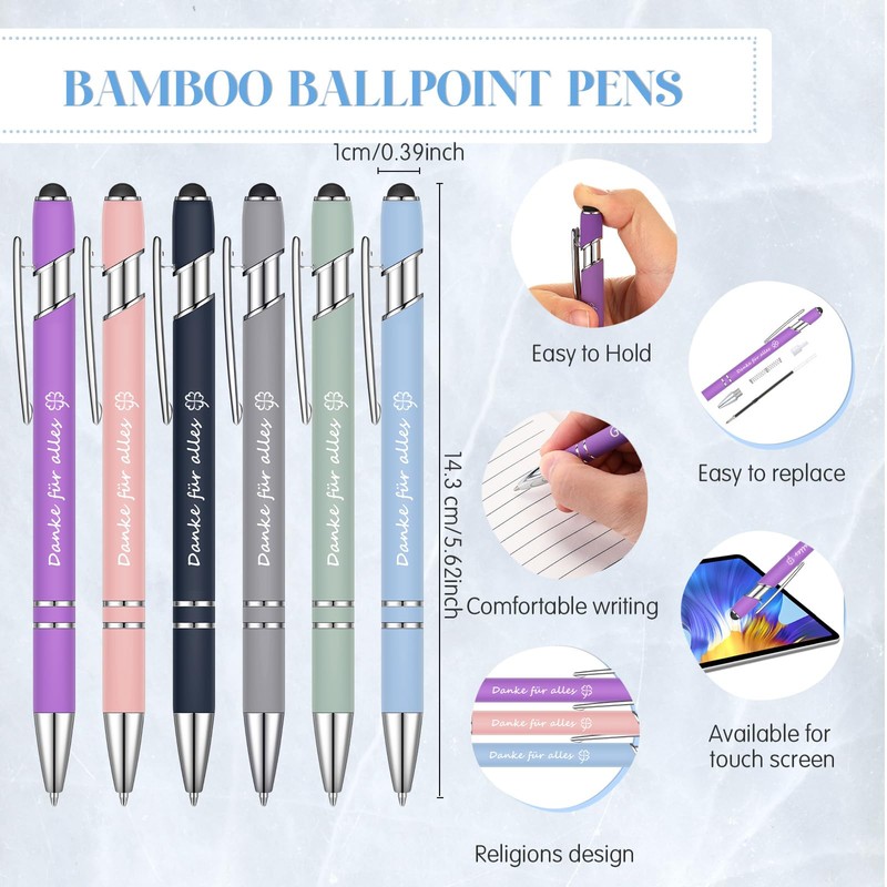 - One set meets multiple requirements: the thank you gifts package includes 6 small notepad and 6 ballpoint pens with touch pen. The quantity is enough to meet your writing needs on different occasions