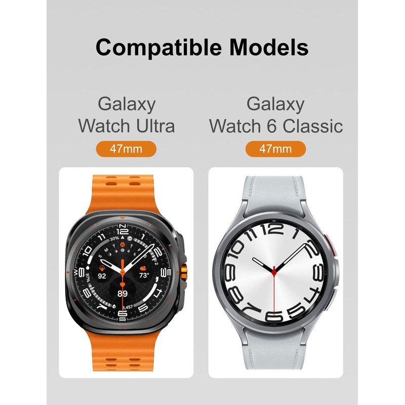 - Compatible watch: Carefully designed for Galaxy Watch Ultra (47 mm) / Galaxy Watch 6 Classic (47 mm), it can perfectly cover the screen of the watch, so that the watch looks like it is without a protective glass.