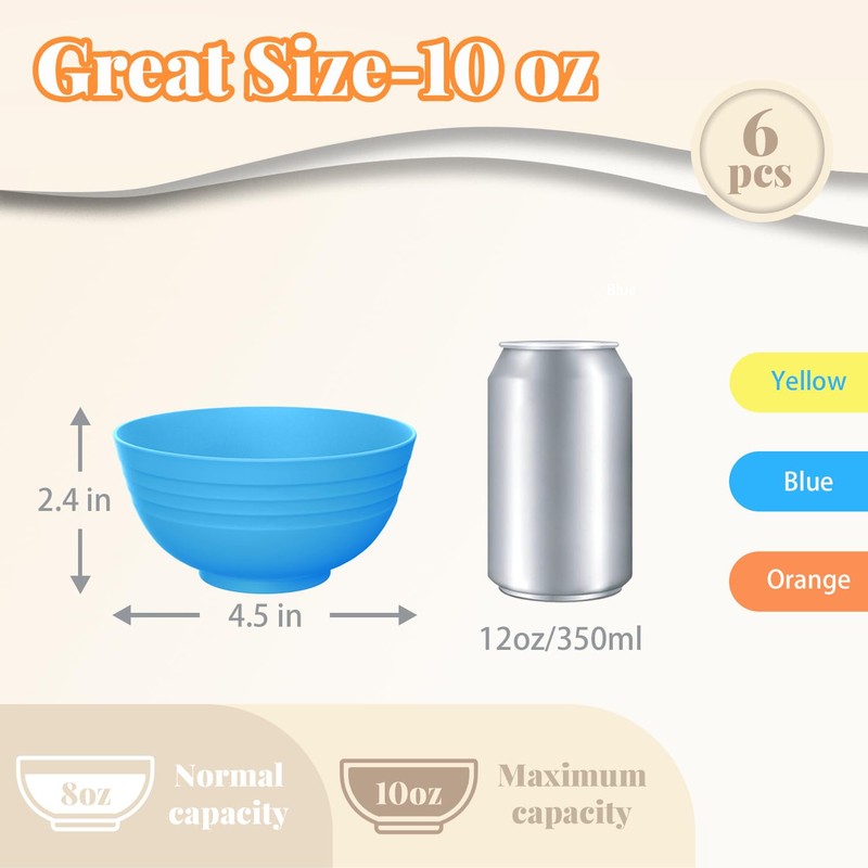 SINOGE 10 OZ Small Bowls Set of 6, Wheat Straw Bowls Small Snack Bowls, Unbre...