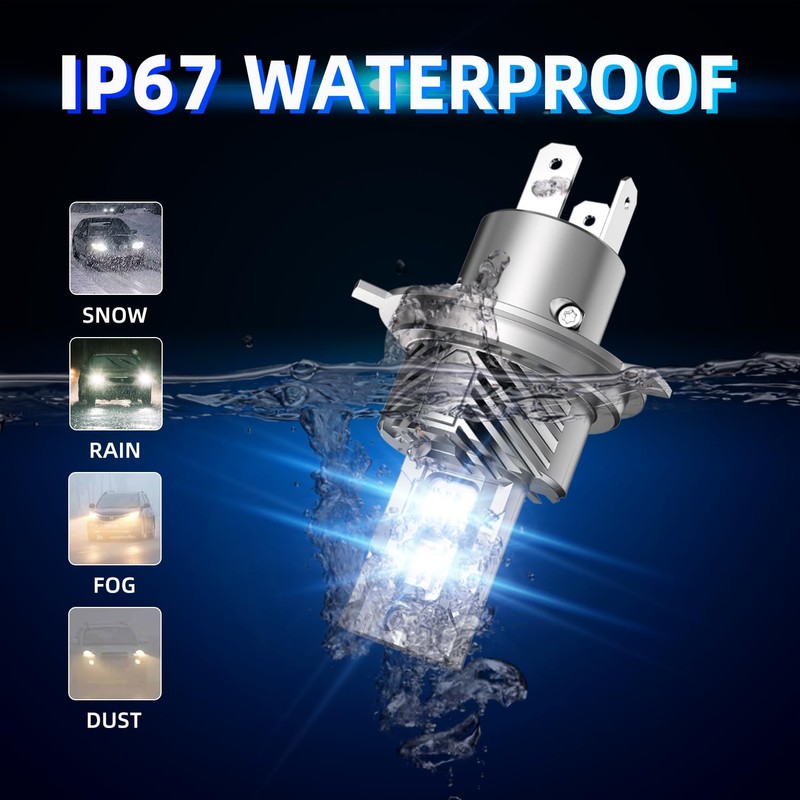 - 【Perfect Beam Pattern】H4/9003 LED bulb simulates the beam pattern of halogen bulb, using an ultra-thin chip copper plate to ensure a full beam pattern, without any dark spots or scattered light. Ensure a safe driving experience with these bright H4/9003 LED headlight bulb that won't blind or dazzle oncoming drivers