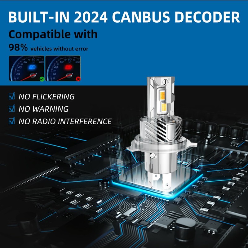 - 【Built-in 2024 Canbus Decoder, Improved Compatibility】1:1 mini design according halogen, NO additional adapter/retainer is required, JUST PLUG AND PLAY; Compatible with 98% of vehicle computer systems without any errors or flickers, but for a few sensitive car models, a canbus decoder may still be required