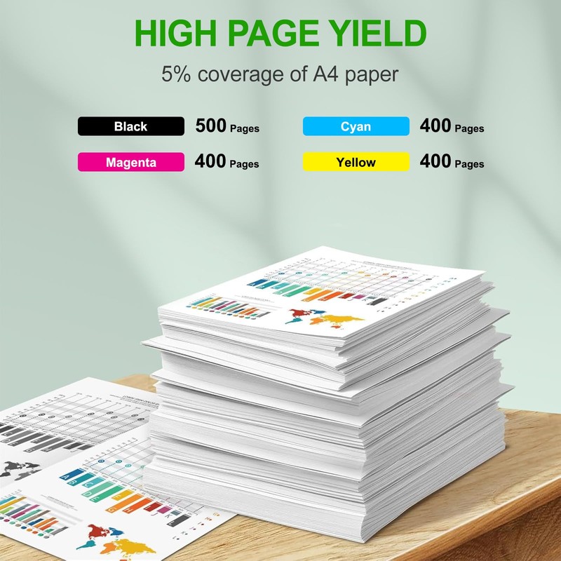 • High Page Yield: Black:20ML, Color:9ML 500 pages for 924 black (924BK) ink cartridges, 400 pages for 924 cyan magenta yellow ink cartridges (924C 924M 924Y) colour cartridges (based on 5% coverage per A4 page)