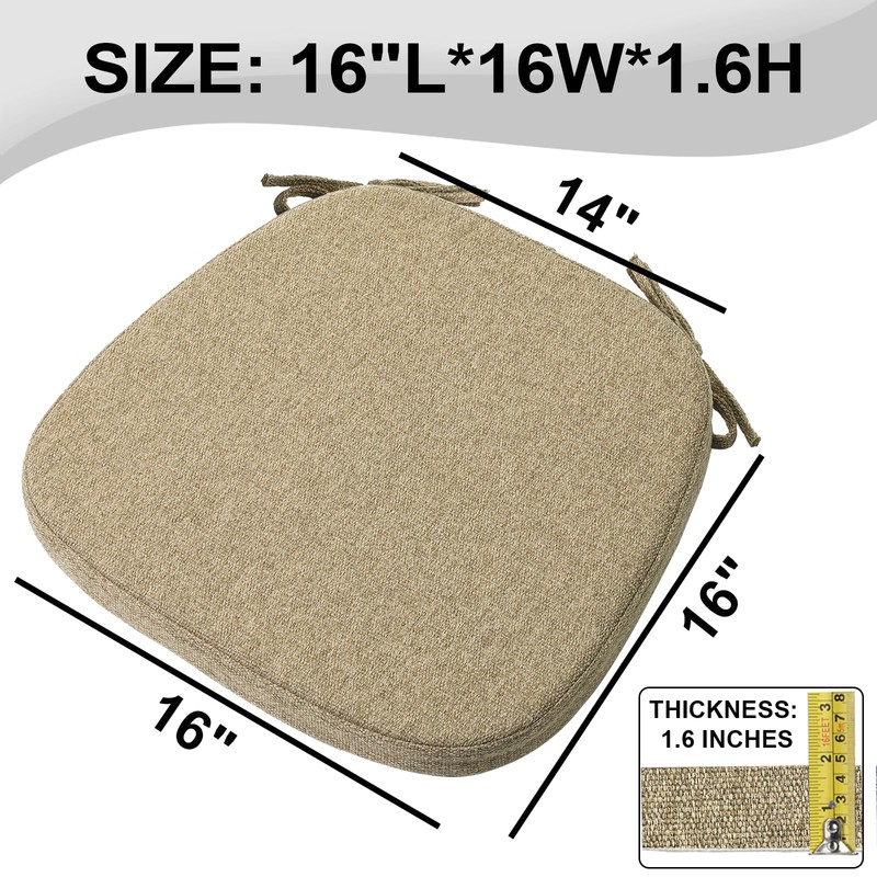 SINOSSO 6 Pack Memory Foam Chair Cushions for Dining Chairs, Friendly Woven Fabric 16" U-Shape Comfortable Kitchen Chair Pads, Removable Slip Resistant Seat Cushions (Set of 6, Linen)