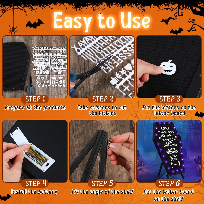 - Easy to Use: the coffin shaped letter board is equipped with a metal sawtooth hanger for wall display and an adjustable solid wood easel for desktop display, simple to operate without assembly, saving your time and energy