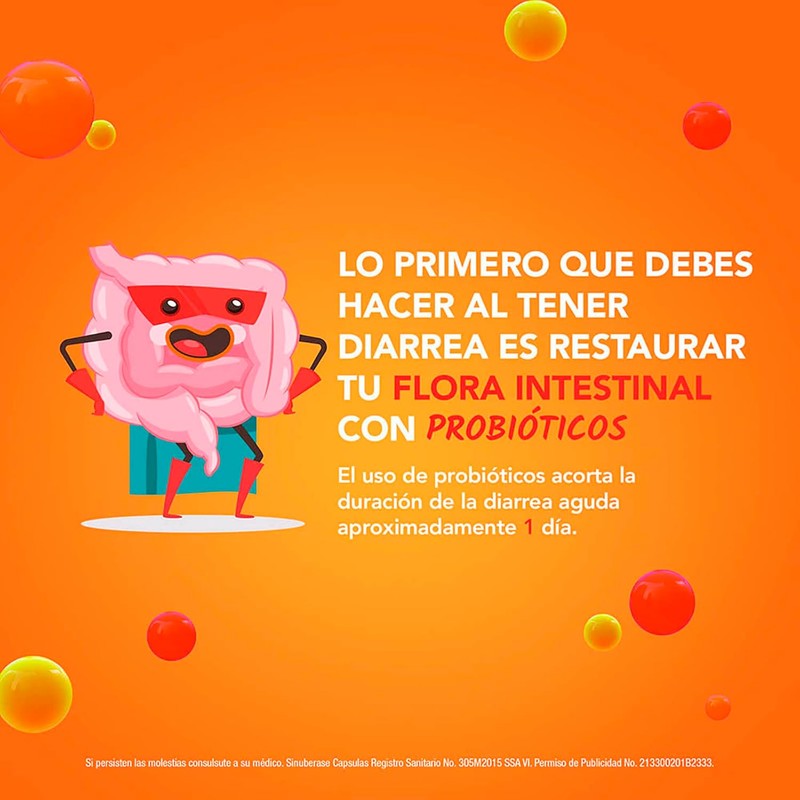 - Billions of probiotics that restore the balance of the intestinal flora helping to reduce diarrhea