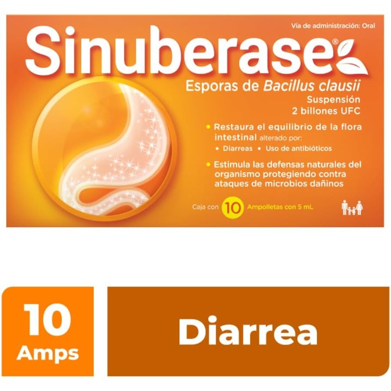 Sinuberase probiotic suspension, Bacillus clausii 2 billion CFU in 10 ampoules