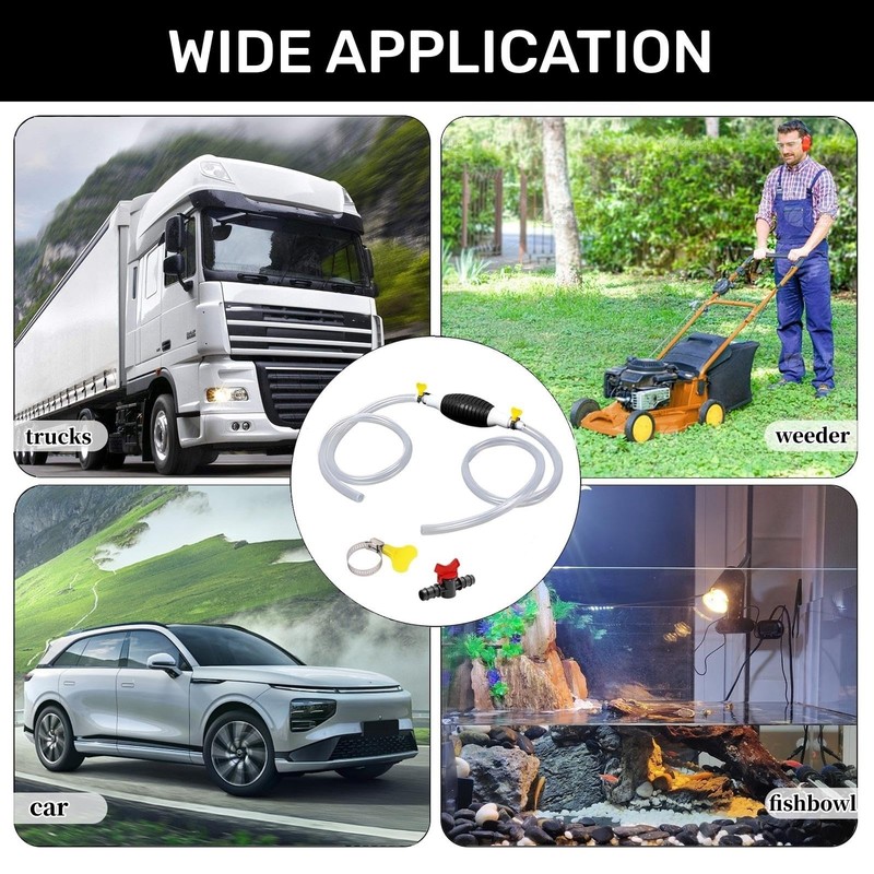 - 【Wide Usage】The gas siphon pump is suitable for the safe transfer of gas, fuel, oil, gasoline, diesel, water or other non-corrosive liquids. It can also be used as a water changer for fish tanks, adding to its versatility and usefulness.