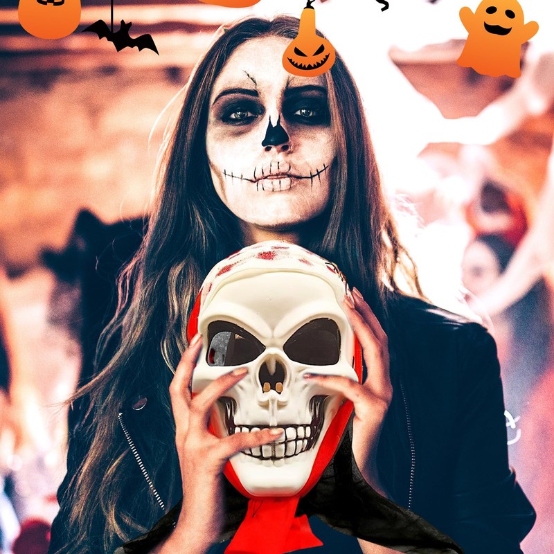 - 【Güvenlik Malzemeleri】- Cadılar Bayramı kuru kafa maskesi, insanların cildine iyi uyum sağlayan güvenli plastikten yapılmıştır. Yırtılmaya karşı dayanıklıdır ve sürekli kullanılabilir. Çevre dostu, zehirsiz, rahat ve nefes alır.