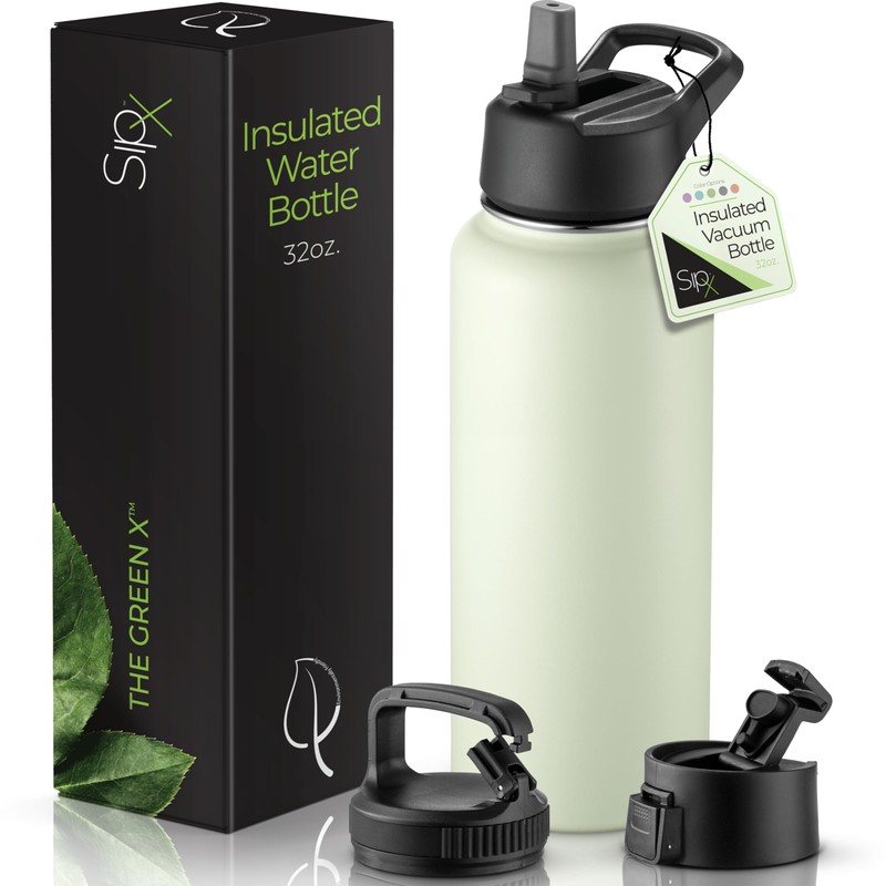 SipX™ Triple-Insulated Stainless Steel Water Bottle 32oz. With 3 Lids, BPA-Free Reusable Insulated Water Bottle Keeps Cold 24 Hours, Metal Water Bottle Made Of Sustainable Material For Hiking & Biking