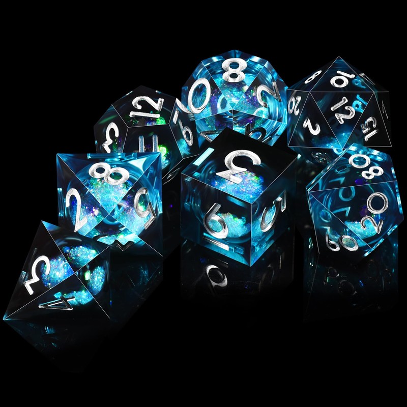 - LIQUID CORE CUBES - Resin DND cubes contain quicksand balls with liquid core. You can see the effect of floating quicksand when rolling, and different angles provide a different visual experience