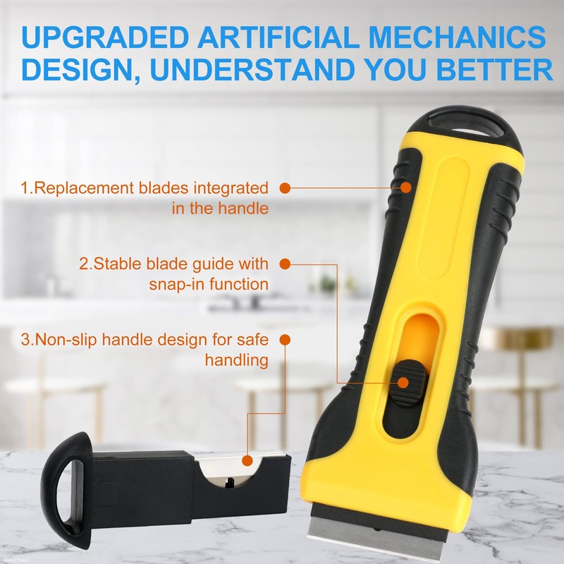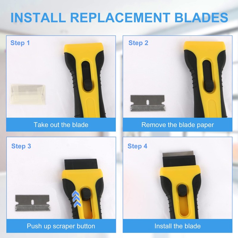 - 【Widely Application】Our scraper tools have widely application, Can be used as window scraper, oven scraper, glass scraper, paint scraper, sticker remover and so on. It’s can effectively removing stovetop, subfloor vinyl, labels, stickers, window film, decals, and other adhesives from car windows and windshields etc.You will get a warm and clean environment.