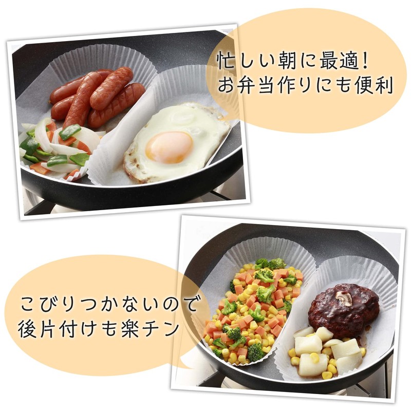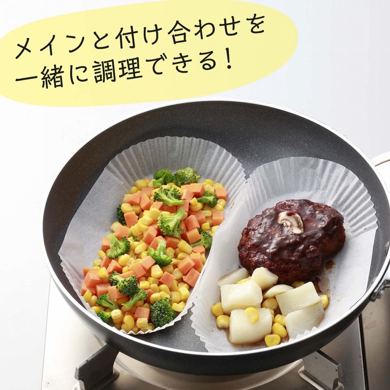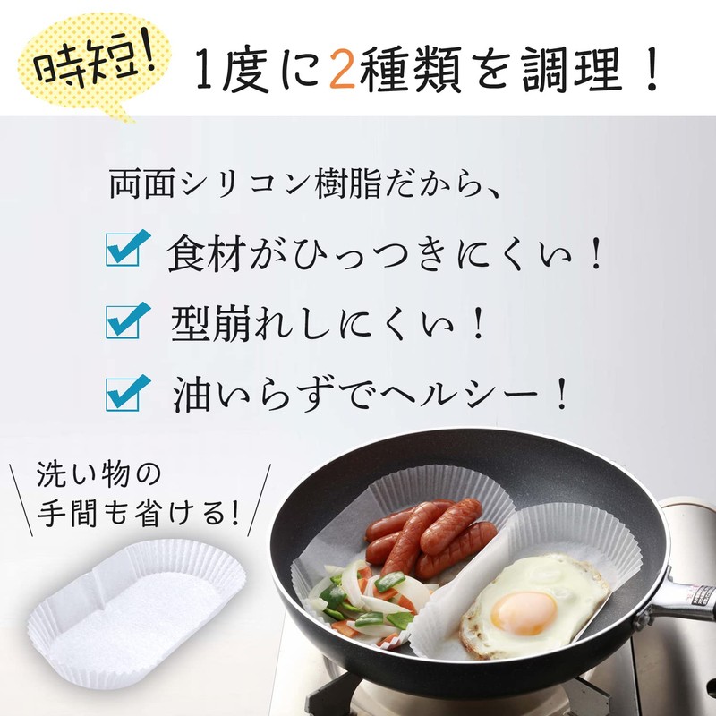 Just place it on your pan The double-sided silicone resin coated sheet means you can cook healthily because you don't have to worry about getting grease. You can place 2 pans in a 10.2 inch (26 cm) frying pan, so you can cook 2 types at the same time and short-time cooking! Frying after cooking, the pan does not get dirty, so you can save the hassle of washing.