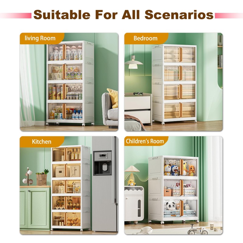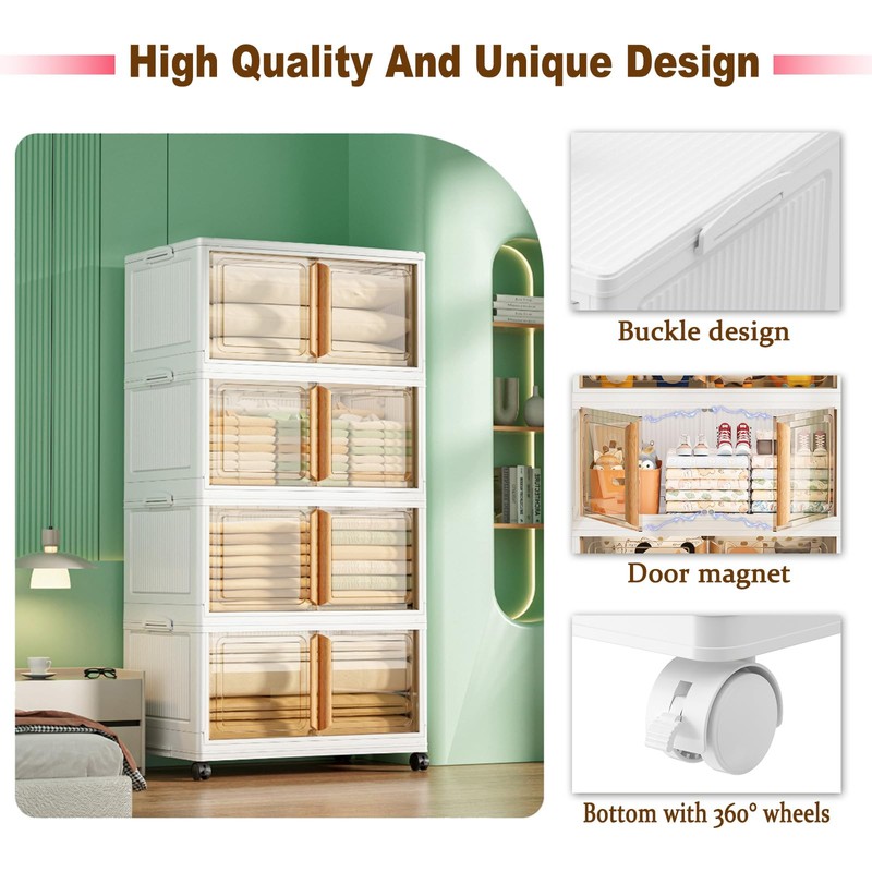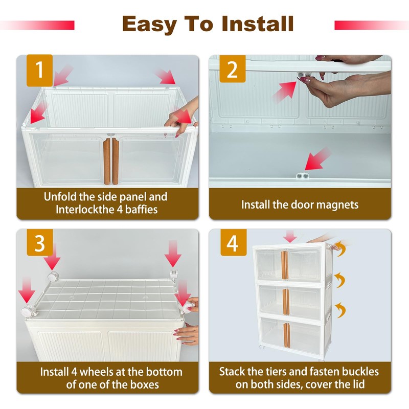 3. Only 4 steps on installation then you can start to use the collapsible storage bins with lids with open front door, no stools needed and it can be easily finished by oneself.