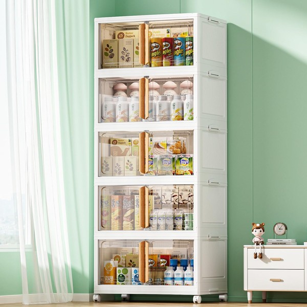 SIRIRIC 5-Tier 365Quart Plastic Storage Bin with Lid, Stackable Cabinet Collapsible Box, Dual Open Storage Containers for Home,Office