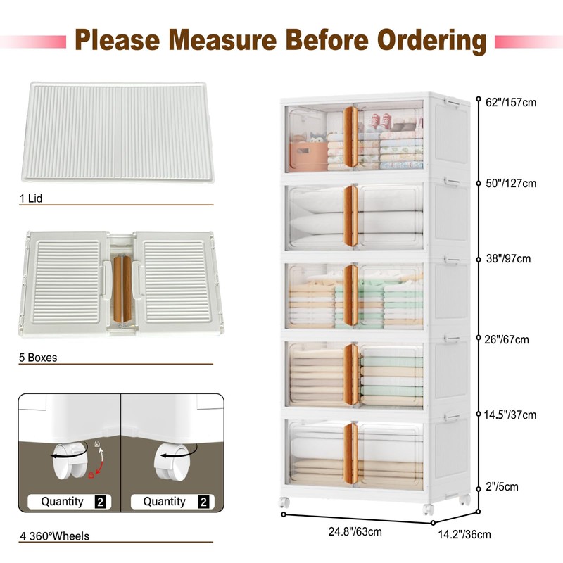 - 【Stackable Design】Engineered with 5-tier stackable configuration to maximize vertical space utilization. Securely store shoes, accessories, or bulkier items like quilts through interlocking stability features. Collapses to 3'' flat profile for compact under-bed storage or discreet corner placement when not in use.