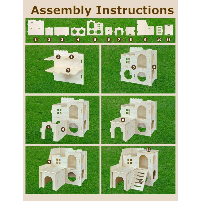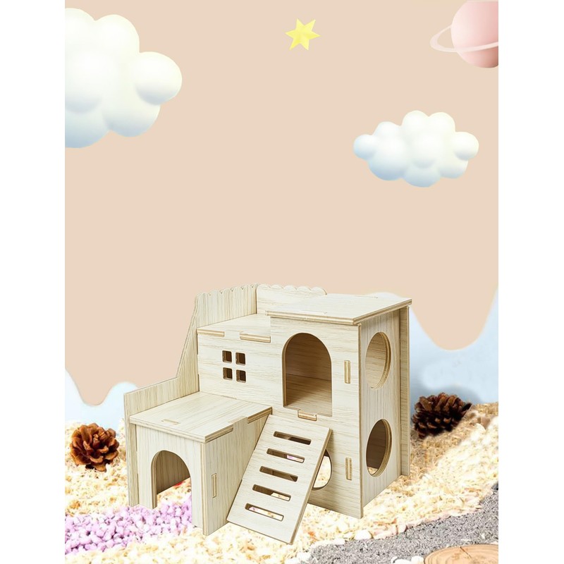 • Funny Hideout: This hamster habitat has secret spaces and holes, provide a playground for mouse to hide, store food and play, the space is conducive to sleeping during the day. This hut satisfies their playing instinct and helps reduce their loneliness and boredom.