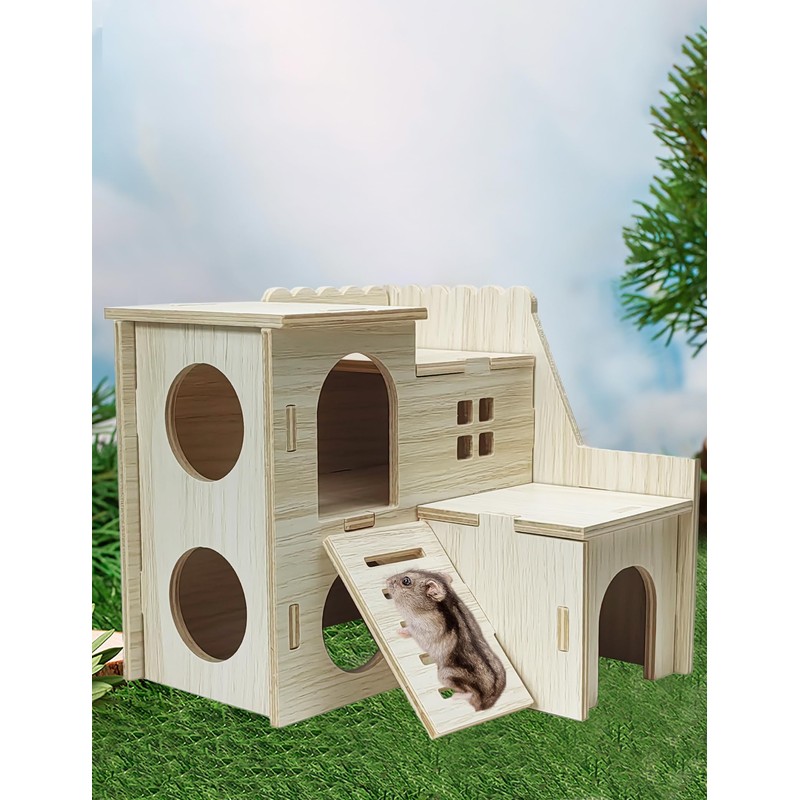 Sirvarni Hamster Hideout Cage Accessories - Hamster House and Habitat Wooden ...