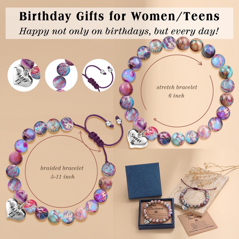 - Birthday Gift for 50th: Stretch bracelets for women, each one made by handmade, precious and meaningful, best birthday gifts for mom, grandma. Wish her more happy returns.