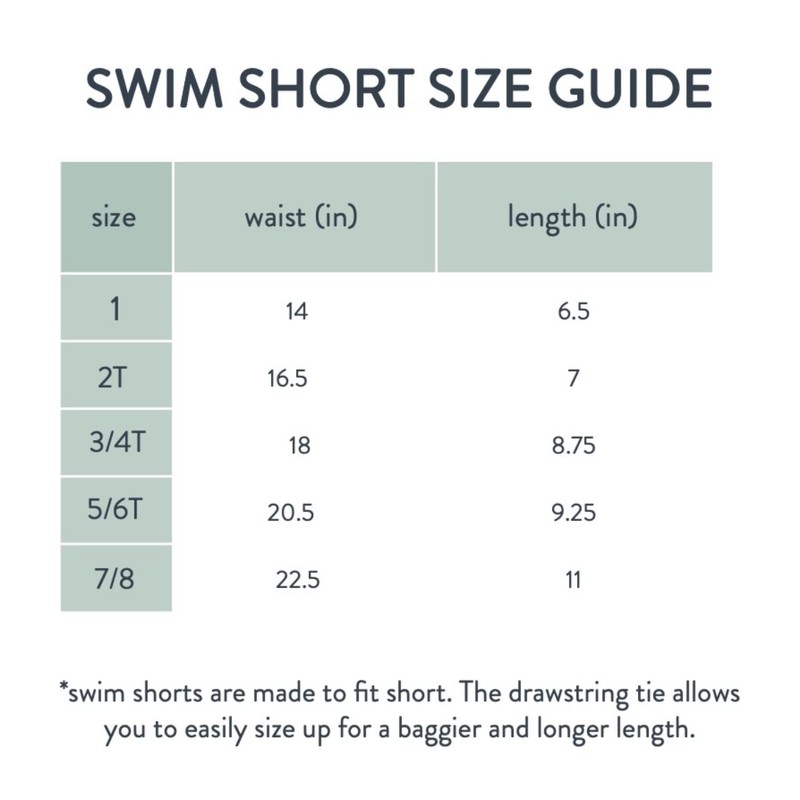 - Easy-Peasy Sizing: Our baby boys' swimwear is available in sizes ranging from 6 months to 8 years, making them a great choice for toddlers and growing kids alike. Plus, our helpful size charts make it easy to pick the right toddler swimming trunks for your little one.