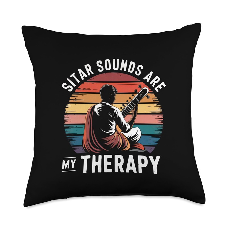 Sitar Sounds Are My Therapy Retro Music Throw Pillow