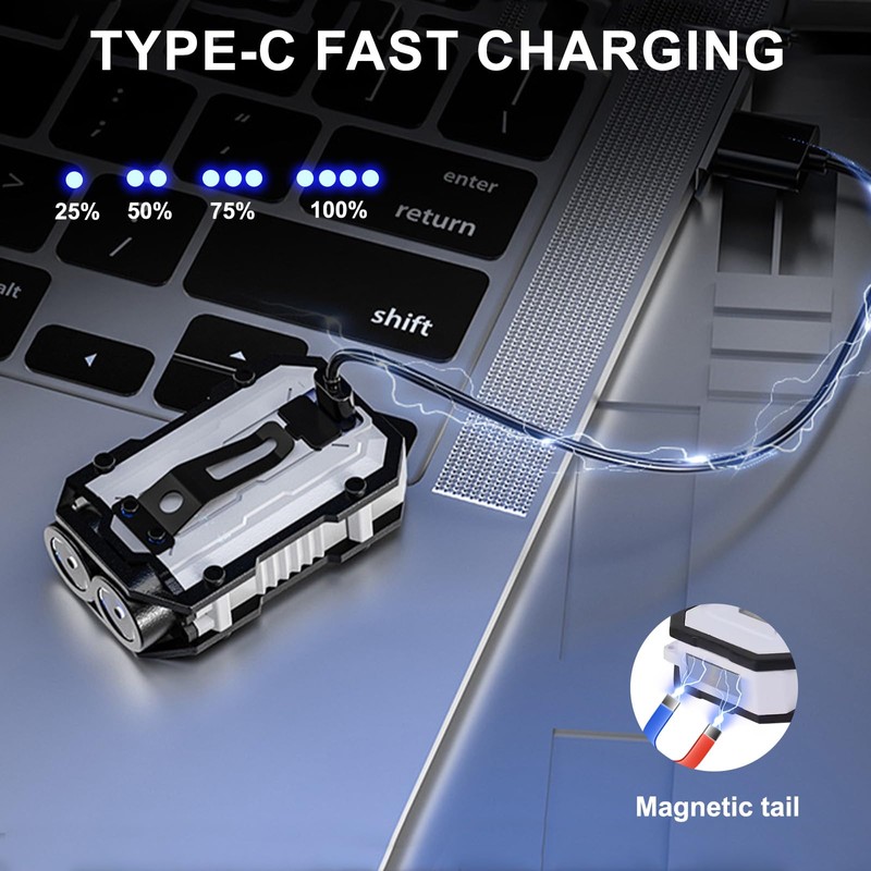 • USB CHARGING - This edc flashlight rechargeable supports Type-C charging and can connect to all devices with usb port. And, it only needs to be charged for 1 hours to provide up to 4 hours of runtime.