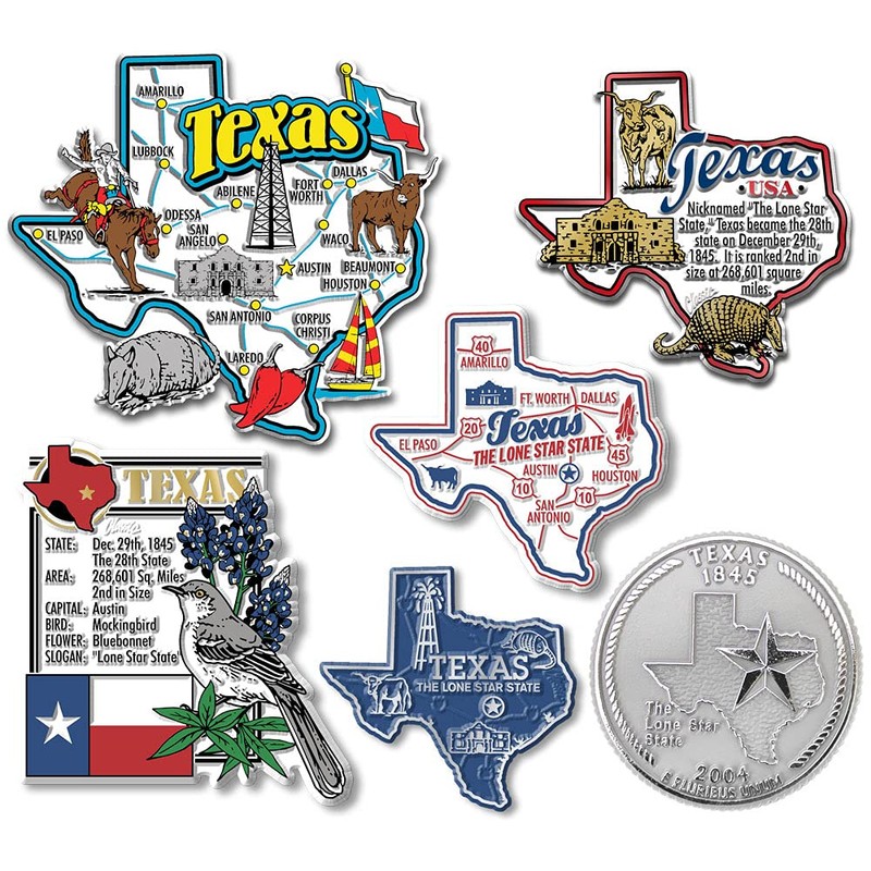 - ''' Durable .100 Thick Construction#||# Thick Flexible 3-D Molded Rubber Refrigerator Magnets#||# Made In USA#||# Includes six Texas collectible souvenir magnets#||# Great Magnets for the Collector!'''