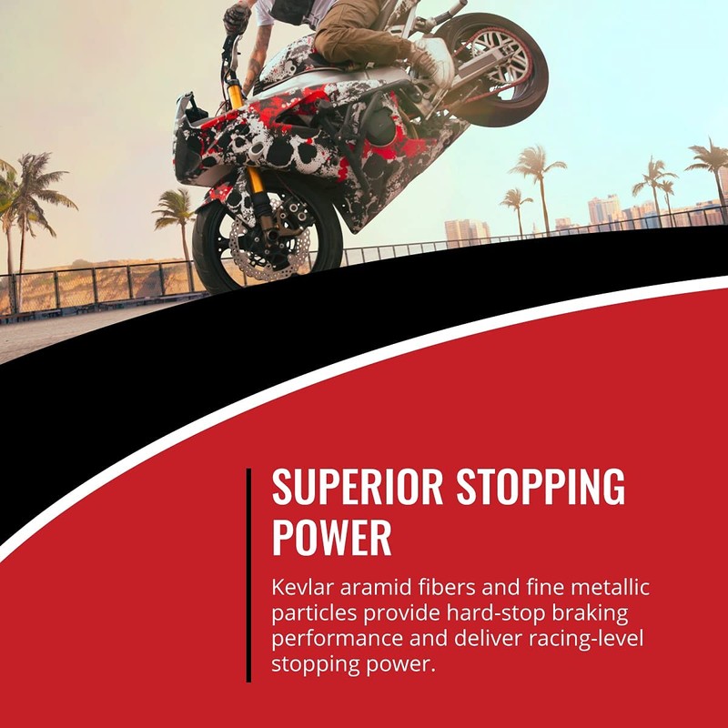 - CHOOSE LONGER PAD LIFE: the Kevlar aramid fibers and fine metallic particles extend pad life and help the brake pads last longer than organic or carbon/graphite-organic pads