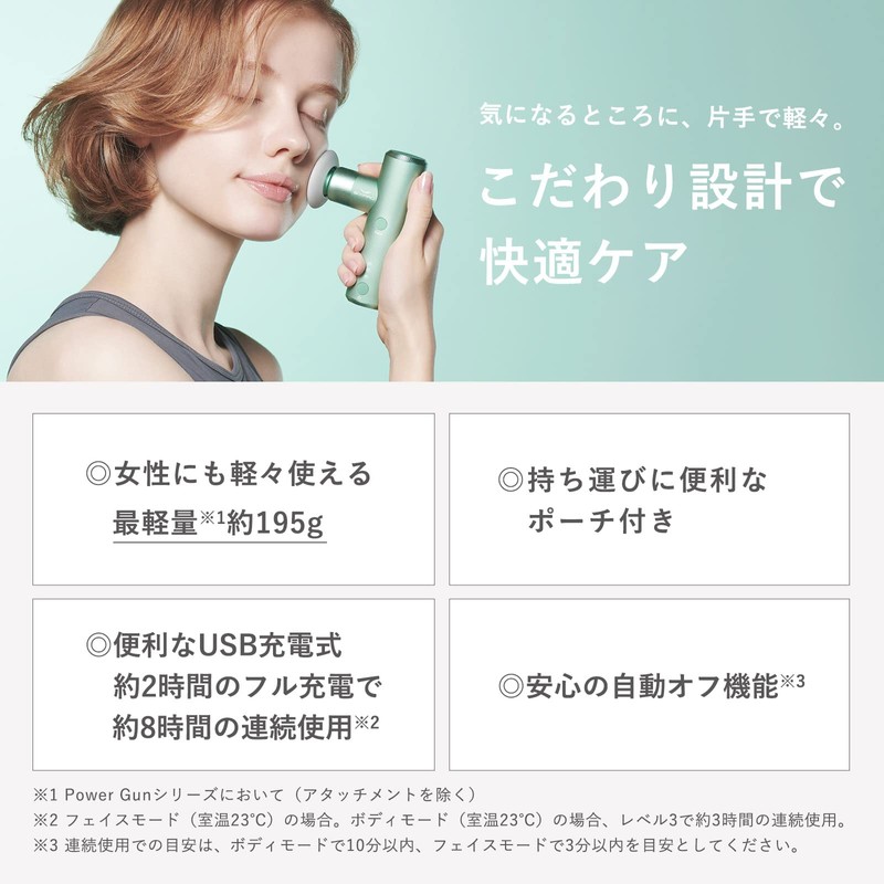 - 約2時間のフル充電で、最大約8時間程度使用できます(フェイスモードの場合、室温23℃の場合)。