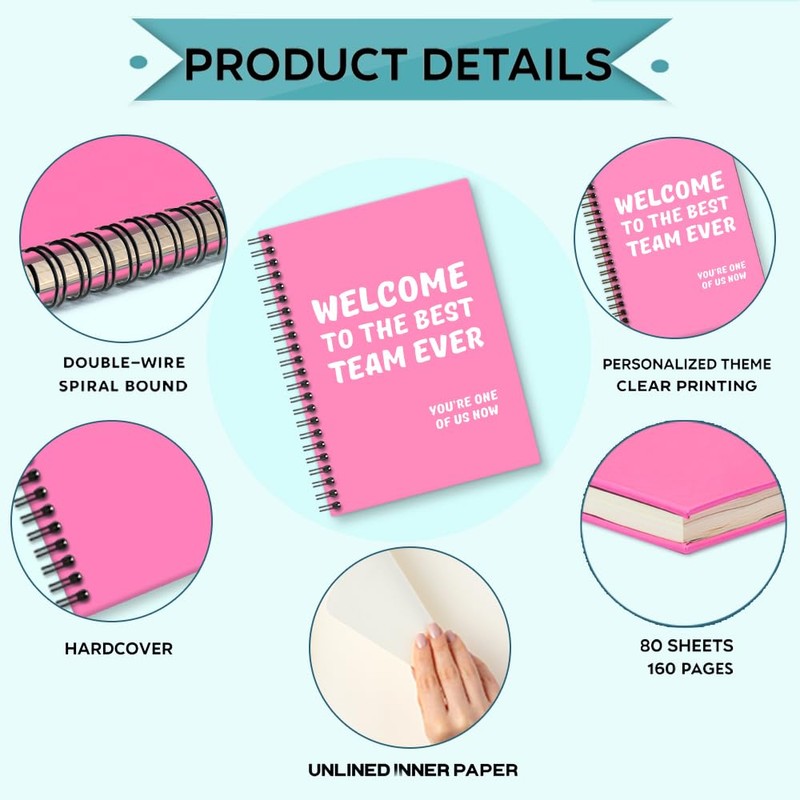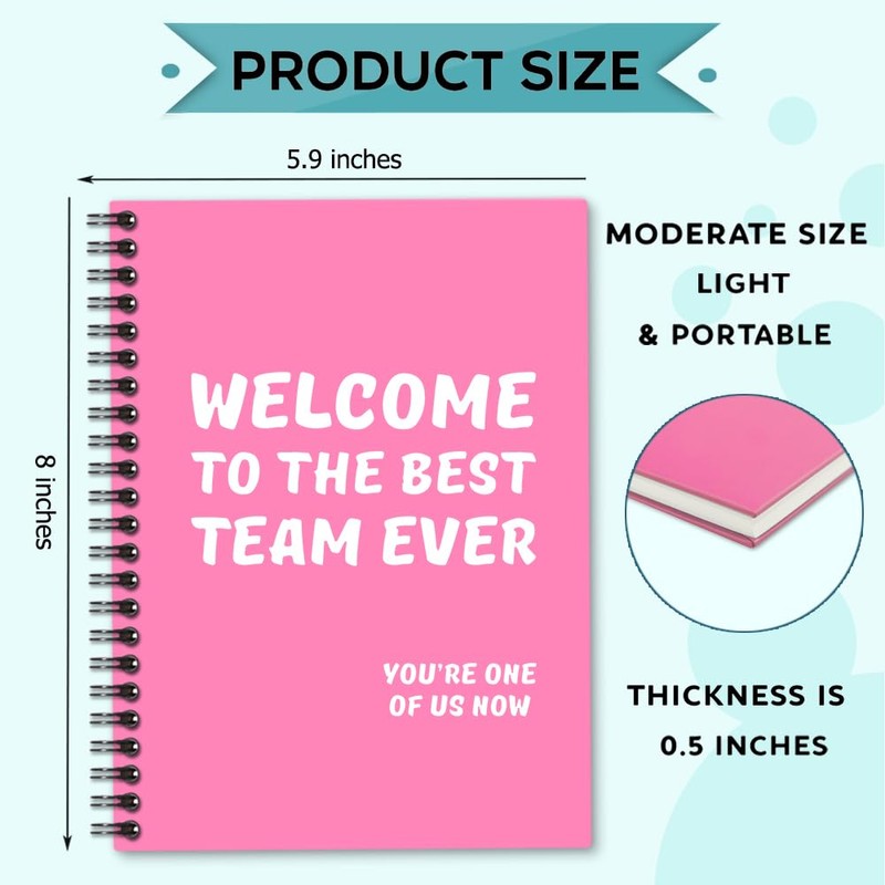 Sixrip Welcome to The Best Team Ever Pink Notebook - 160 Blank Pages Spiral Journal for Office Worker, New Hire Welcome Gifts, Employee Appreciation Present, Team Member Gifts for Coworker Colleague