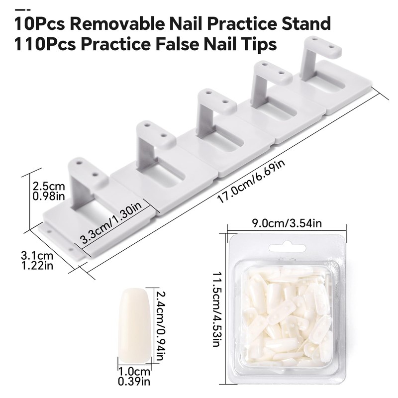 - Package Includes: You will receive 10pcs plastic nail polish display stands, these individual small practice stands can be spliced, with 110 practice false nail tips, can meet your needs for practicing various nail skills.
